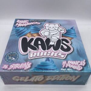 This astonishing Kaws Rocks Gelato Edition is more than just a product; it is a limited-edition collectible. With unique markings and a certificate of authenticity, each box verifies that you possess a genuine Kaws Moon creation. Owning a Kaws Rocks Gelato Edition Box from this collection means you have a piece of artistry inspired by the legendary Kaws Rocks Moonrock Grape, elevating your cannabis collection to new heights. Buy Kaws Rocks Gelato and become a part of the legend.