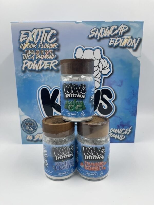 The Kaws Rocks Snowcap Edition takes the original concept to new heights. This Snowcap Edition is distinguished by its use of premium ingredients and meticulous craftsmanship. The Snowcap Edition is known for its exceptional potency and unique flavor profile, thanks to the infusion of 99.9% THCA diamond powder, resulting in a potent cannabis experience. When you buy Kaws Rocks Snowcap, you’re investing in a product that epitomizes premium cannabis.
